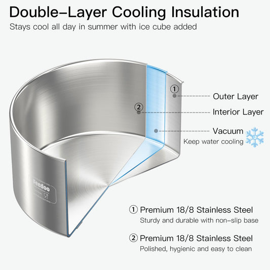 1Gallon Double Layer 304 Stainless Steel Dog Bowl - Insulated & Durable | Non-Slip Base | Easy to Clean | BPA-Free Safe Dog Water Bowl[128oz for Large Giant Breeds]