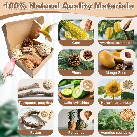 2 in 1 Parrot Toys, Tyotrbs Parakeet Foraging Box DIY Hanging String with Comes with 2 Hooks Bird Toy for Parakeets,Cockatiels,Conures,Love Birds Cage Accessories for Small to Medium Birds