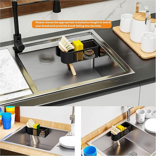 2-in-1 Dish Wand Holder & Sponge Holder for Kitchen Sink Hanging,With Adhesive,Rust Proof Scrub Brush,Scrubber,Dish Sponge,Spinge Holder,In Sink Organizer & Basket Accessories & Essentials,Plastic