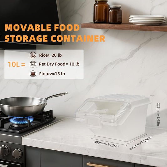 22 Lbs Large Rice Storage Container with Measuring Cup, Clear Pets Food Bin with Seal Locking Lid, Dry Food Flour Bin for Rice, Flour, Pet Food, Baking Supplies
