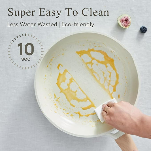 22 Pcs Pots and Pans Set Non Stick Non-Toxic Ceramic Kitchen Cookware Sets Nonstick Pot&Pan With Lid Cream White Granite Induction Compatible with Glass Lids Crepe