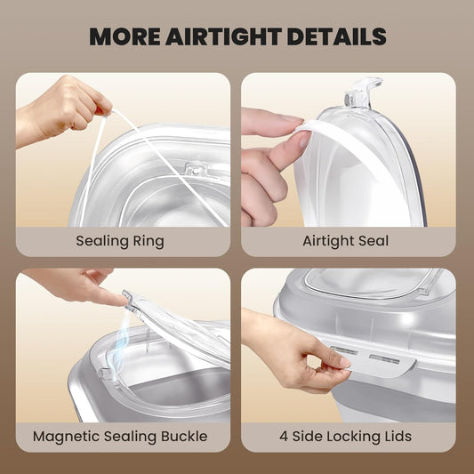 32-35 Lbs Dog Food Storage Container,Collapsible Dog Food Container with Transparent Airtight Lid,Wheels,Date Track,Pet Food Storage Container for Rice,Flour,Sugar,Scoop And 2PCS Containers
