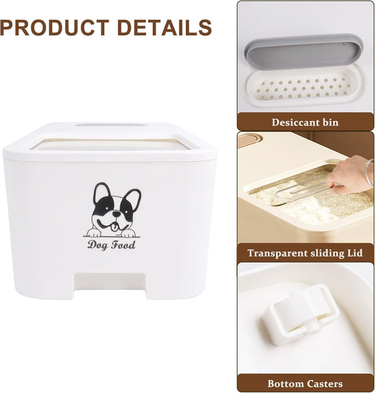 10Lbs Dog Food Storage Container,Pet Food Container with Rolling Wheels & Sliding Lid,BPA Free Plastic Storage Bin For Dog Food Kibble with Measuaring Cups-Rodent proof