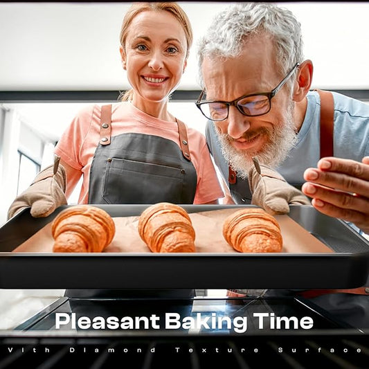 12-Piece Nonstick Bakeware Set, Stackable Non Toxic Baking Pans Set with Rack & Kitchen Utensils, Cookie Sheets Set, Cake Pan, Muffin Pan, Loaf Pan, Roasting Pan, Black