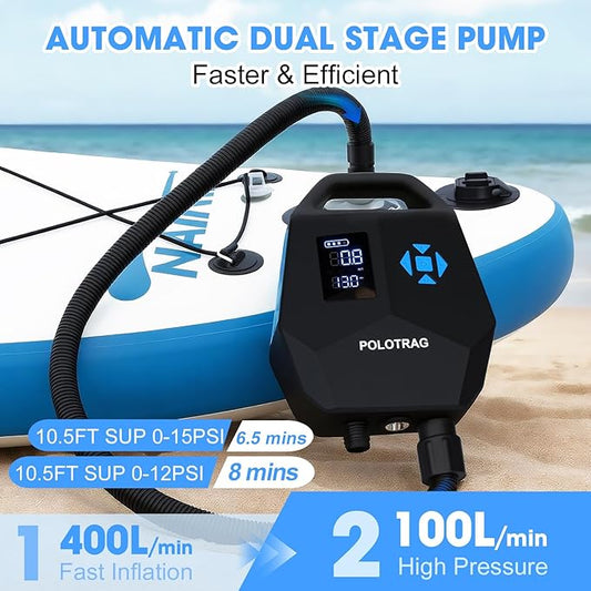 Paddle Board Pump, Rechargeable SUP Pump Electric, 20PSI Portable Paddleboard Pump with Inflation & Deflation, Auto-Off for Inflatables, Kayak, Towable Tube and Air Mattress