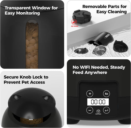 PAPIFEED Automatic Cat Feeder, 3L Timed Cats Food Dispenser with Dual Power Supply, Auto Pet Feeder with Programmable Portion Control for Cats and Small Dogs, Black