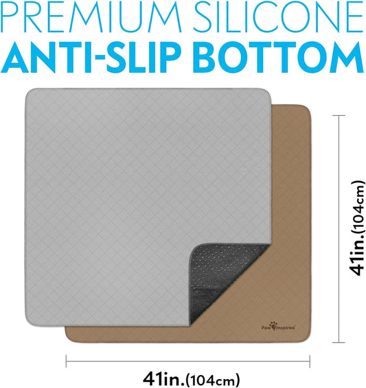 Paw Inspired Washable Pee Pads for Dogs (2 Pack), Leakproof, Non-Slip Reusable Puppy Pads for Potty Training, Whelping, Waterproof Mat (41x41 Inch, Pack of 2)