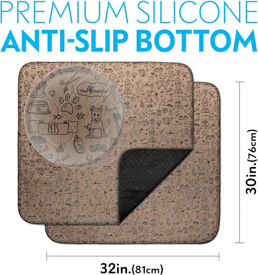 Paw Inspired Washable Pee Pads for Dogs (2 Pack), Leakproof, Non-Slip Reusable Puppy Pads for Potty Training, Whelping, Waterproof Mat (32x30 Inch, Pack of 2)