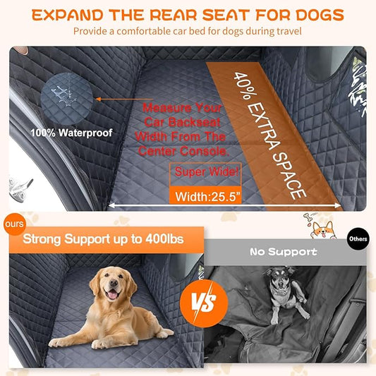 Paw Jamboree Dog Car Seat Cover for Back Seat Extender Pet Cover for Dogs Hammock for Hard Bottom Car Backseat Cover for Dogs in Car