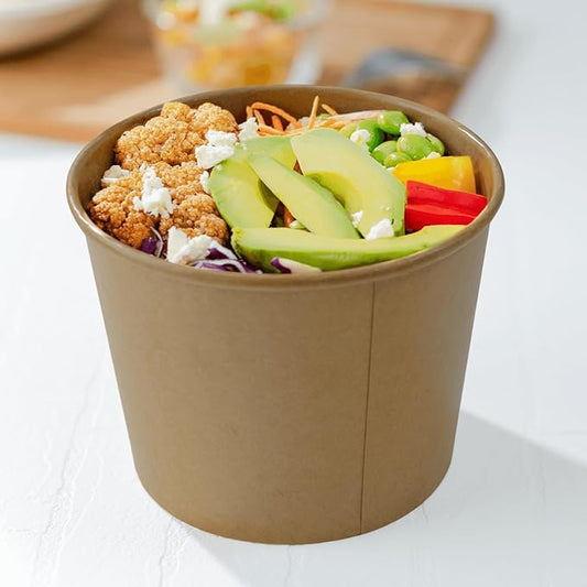 Karat [28oz - 600 ct Kraft Paper Food Container for Hot or Cold Food, Ice Cream, Noddles and Salad, 5.59" Rim (C-KDP28K)