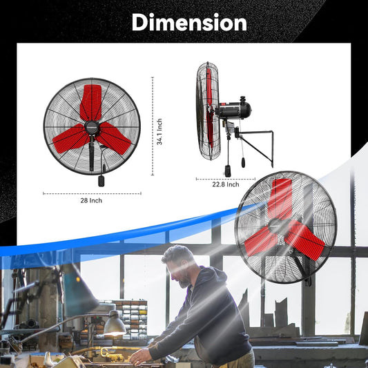 20 Inch Industrial Wall Mount Fan - 6000CFM High Velocity, Heavy Duty Metal Construction, 3 Speeds, Adjustable Tilt, Quiet Operation - Ideal for Garage, Shop, Commercial Use