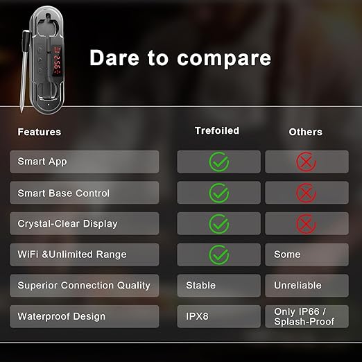 Smart Bluetooth Wireless Meat Thermometer | NIST ±0.5°F Accuracy | 10X Enhanced Sub-1G Signal & Stability | Standalone Display Base | WiFi Long-Range Thermometer for BBQ, Grill, Smoker, Oven, Kitchen