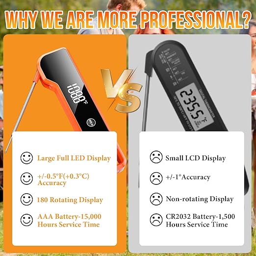 Thermocouple Food Thermometer, <1 Second Response time, ±0.5°F Accuracy, IP67 Waterproof, Magnetic, Auto-Rotate Digital Thermometer for Cooking, Oven, Grill, BBQ, Liquid, Brewing, Tea, Candy