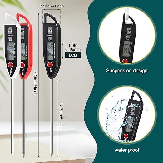 BOMATA 6 Pack Waterproof IPX7 Meat Thermometer Instant Read Food Thermometer with Long Probe for Water, Liquid, Kitchen Cooking, Grill,BBQ ! T101 X 6 Pcs (Black & Red & White)…