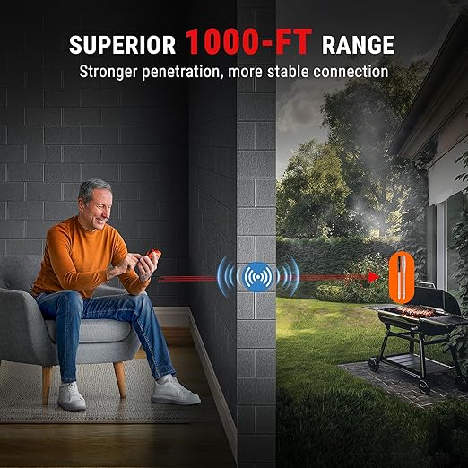 Wireless Meat Thermometer, 500ft Range, Bluetooth, Digital, Smart App Control for Grilling, Smoking, BBQ, Oven, Grill, Smoker, Rotisserie