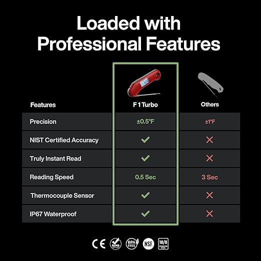 Professional Food & Meat Thermometer, 1 Sec Instant Read & ±0.5℉ Accuracy Driven by Thermocouple Sensor. IP67 Waterproof Digital Thermometer for Cooking, BBQ, Grill Gifts for Men Him Dad Birthday