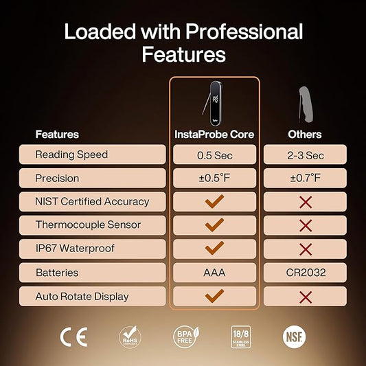 Professional Food & Meat Thermometer, 1 Sec Instant Read & ±0.5℉ Accuracy Driven by Thermocouple Sensor. IP67 Waterproof Digital Thermometer for Cooking, BBQ, Grill Gifts for Men Him Dad Birthday