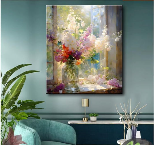 Colorful Flower Framed Canvas Wall Art, Watercolor Floral Bathroom Wall Decor, Spring Nature Wall Painting, Multicolor Botanical Art Print for Living Room, Bedroom, Office - 12X15