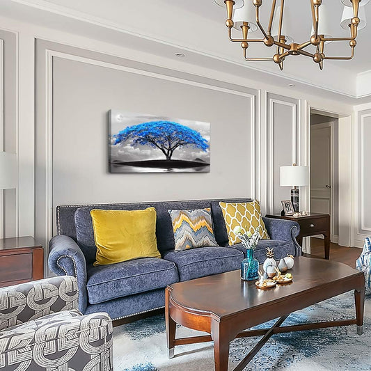 Canvas Wall Art For Living Room Family Wall Decor For Bedroom Modern Office Decorations Blue Tree Wall Pictures Artwork Black And White Scenery Paintings Room Canvas Art Prints Home Decor 20" X 40"