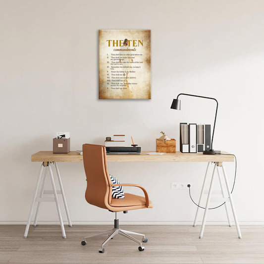 The Ten Commandments Christian Pictures Wall Art, Bible Verse Jesus Bathroom Wall Decor Religion Scripture Framed Painting Religious Canvas Artwork for Church Bedroom Living Room 20"L x 16"W