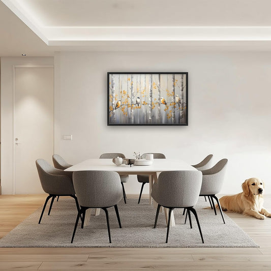 Quorin Bird Large Wall Art Abstract Forest Birds Pictures Wall Decor Yellow Woods Branches Tree Canvas Print Painting Artwork for Bathroom Living Room Bedroom 36L x 24W