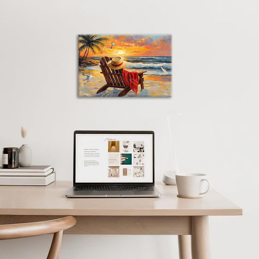 Beach Coastal Bathroom Pictures Wall Art, Seaside Ocean Bathroom Wall Decor, Sunrise Palm Framed Painting Canvas Artwork for Bedroom Living Room Decorations 24"L x 20"W