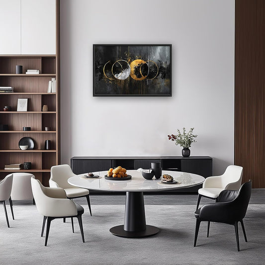 Quorin Abstract Sun Moon Large Wall Art Black and Gold Circle Pictures Sun and Moon Wall Decor Canvas Print Painting Artwork for Bathroom Living Room Bedroom 36L x 24W