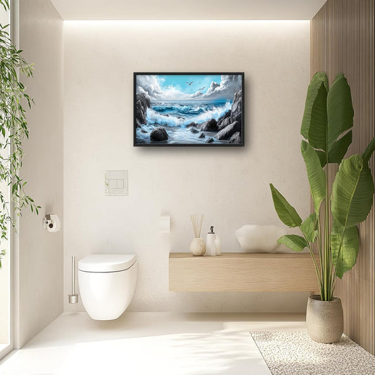 Extra Large Framed Abstract Sea Ocean Wall Art,Black and White Wall Decor, Coastal Seashore Pictures for Living Room,Canvas Print Painting Modern Artwork Bedroom Office Bathroom 36L x 24W