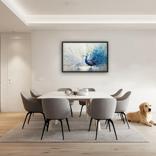 Quorin Peacock Large Wall Art Blue and White Pictures Elegant Animal Wall Decor Canvas Print Painting Artwork for Bathroom Living Room Bedroom 36L x 24W