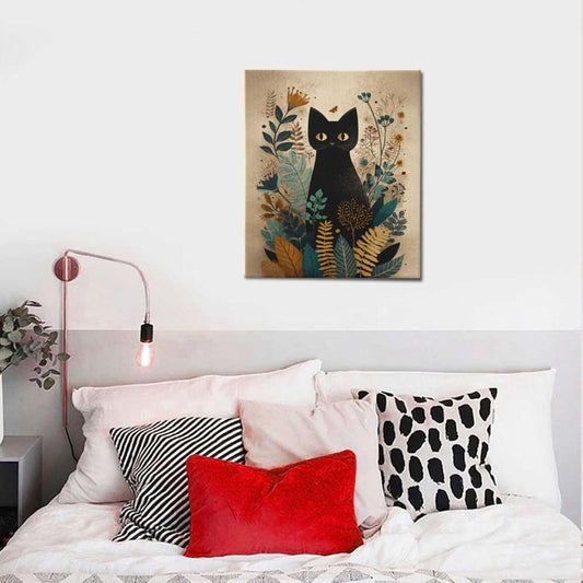 Funny Black Cat Bathroom Wall Art Cute Cat Riding Shark Canvas Wall Decor Animal Kitten Pictures Painting Print Artwork Framed Decorations Gifts for Cat Lover Kids Room Bedroom 16"x24"