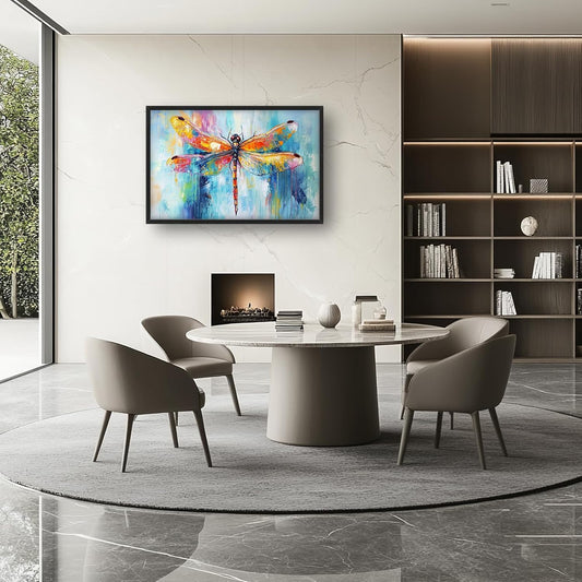Extra Large Abstract Dragonfly Framed Wall Art for Living Room,Oversized Colorful Dragonfly Pictures Wall Decor,Teal Canvas Print Painting Modern Artwork Bedroom Office Bathroom 36L" x 24W"
