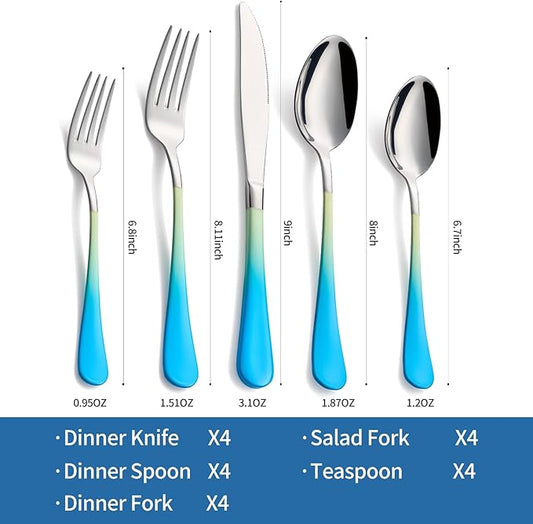20-Piece Grey Blue Silverware Set, 18/0 Stainless Steel Grey Blue Handle Flatware Set, Service for 4,Modern Cutlery Set Includes Dinner Knives Forks Spoons,Mirror Polished,Dishwasher Safe