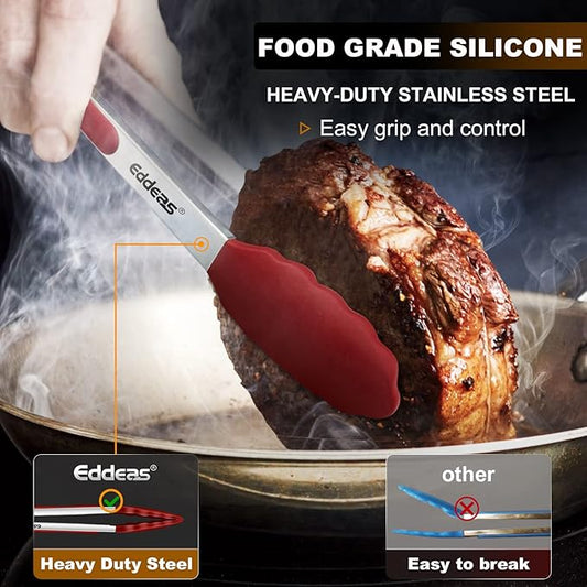 Tongs For Cooking - 7",9" and 12 inch Kitchen Tong with Silicone Tip,Heat Resistant 600 Degrees Metal Locking Tongs - for cooking,Salad and Barbecue,Red Set of 3