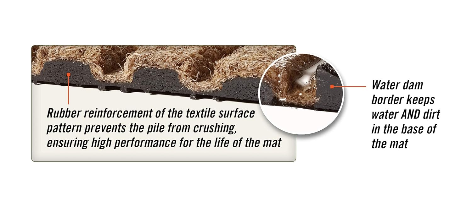 - Exclusive "Water Dam" border keeps dirt and water in the amt and off the floor, minimizing slip hazards and floor damage