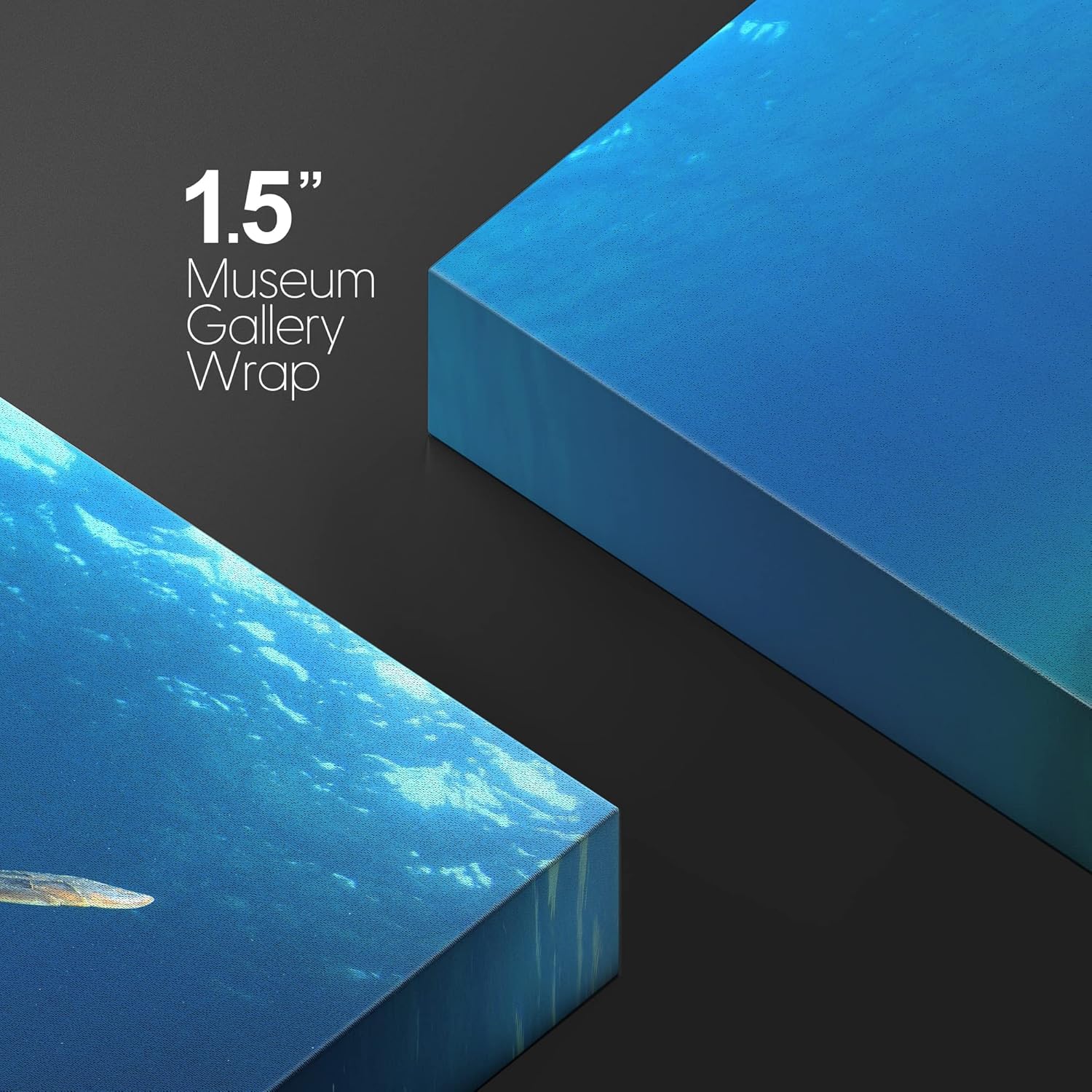 wall26 Canvas Print Wall Art Sea Turtle Gliding Through Sea Nature Ocean Photography Realism Nautical Scenic Relax/Calm Multicolor Ultra for Living Room, Bedroom, Office - 24"x36"