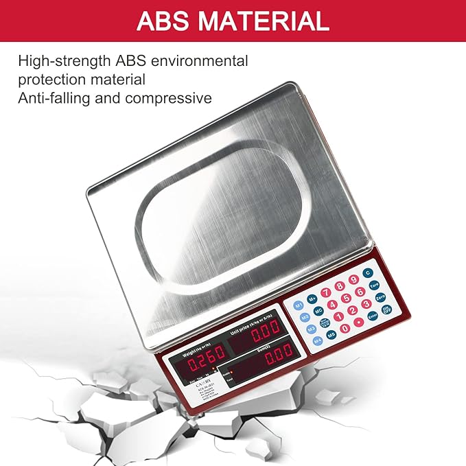 - 【Easy-to-Read Dual LED Display】: Bright front and rear LED screens display weight, unit price, and total price for both seller and customer convenience.