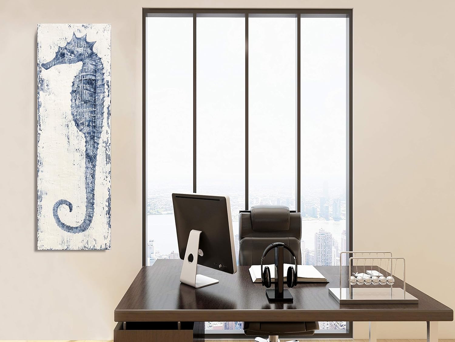 Yihui Arts Seahorse Canvas Wall Art Hand Painted Blue and White Painting Modern Coastal Pictures for Living Room Bedroom Hallway Bathroom Decoration