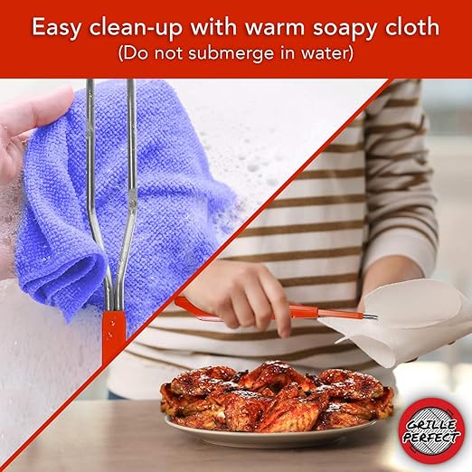 - DO YOU WANT EASY CLEANING? The Grille Perfect thermometer fork tines are made of 304 Stainless Steel. One of the most popular food grade stainless steels used today. It is easily cleaned with soapy water and a dish cloth. The handle should be cleaned with a damp cloth only. Do not submerge the thermometer fully in water at any time.