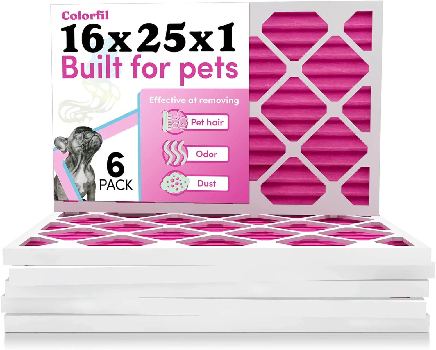 Colorfil 16x25x1 Air Filter (6-Pack) | Made in the USA | Color Changing | Remove Cat and Dog Odor | MERV 8 for Pet Hair Dander and Dust | 15.5"x24.5"x0.75" Exact Size