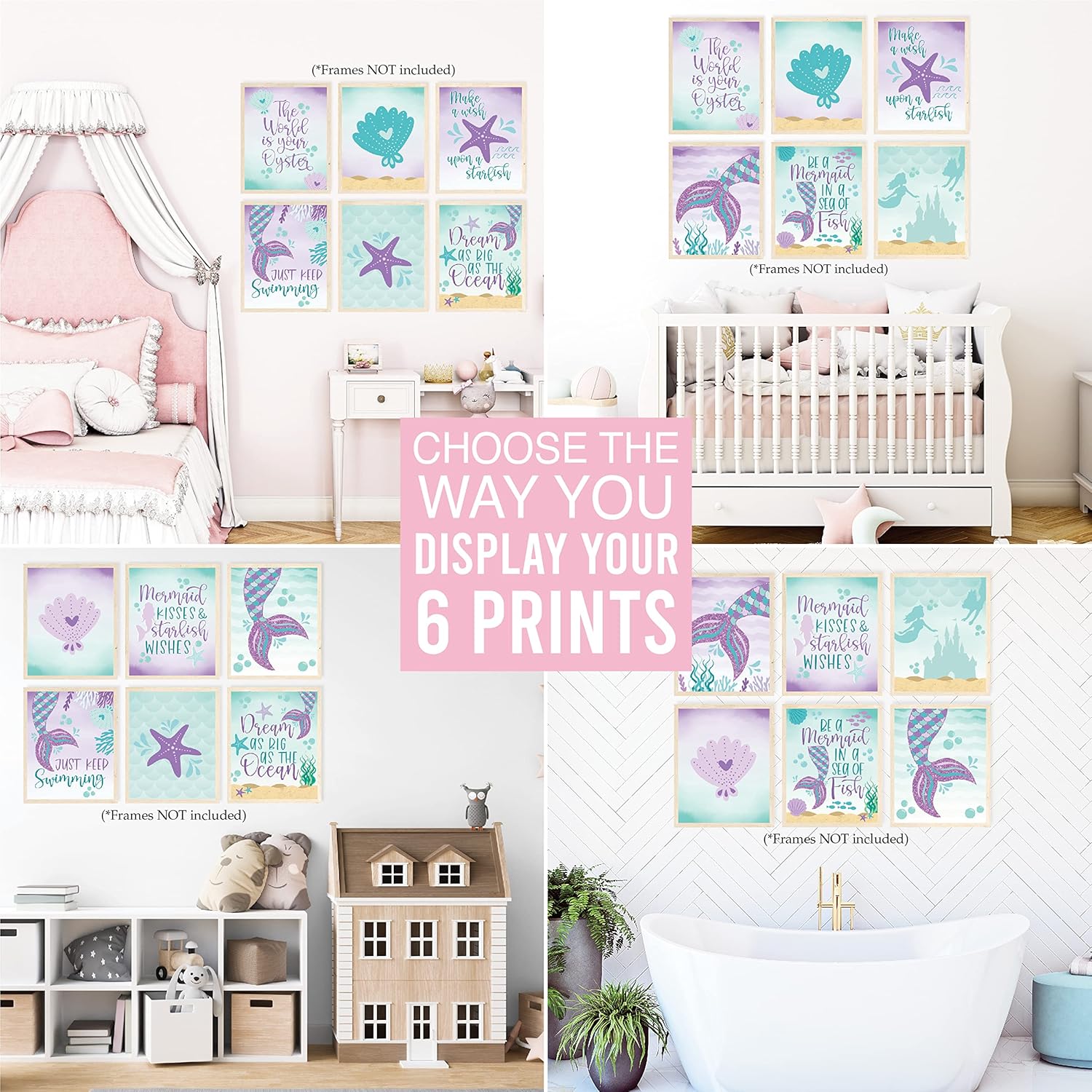 - Bring Any Room To Life; Use this mermaid room decor for girls bedroom to complete a nursery, bedroom, playroom, or even a birthday party; These girls wall decor prints are great to use as kids room wall decor, mermaid birthday decorations, or mermaid party supplies.