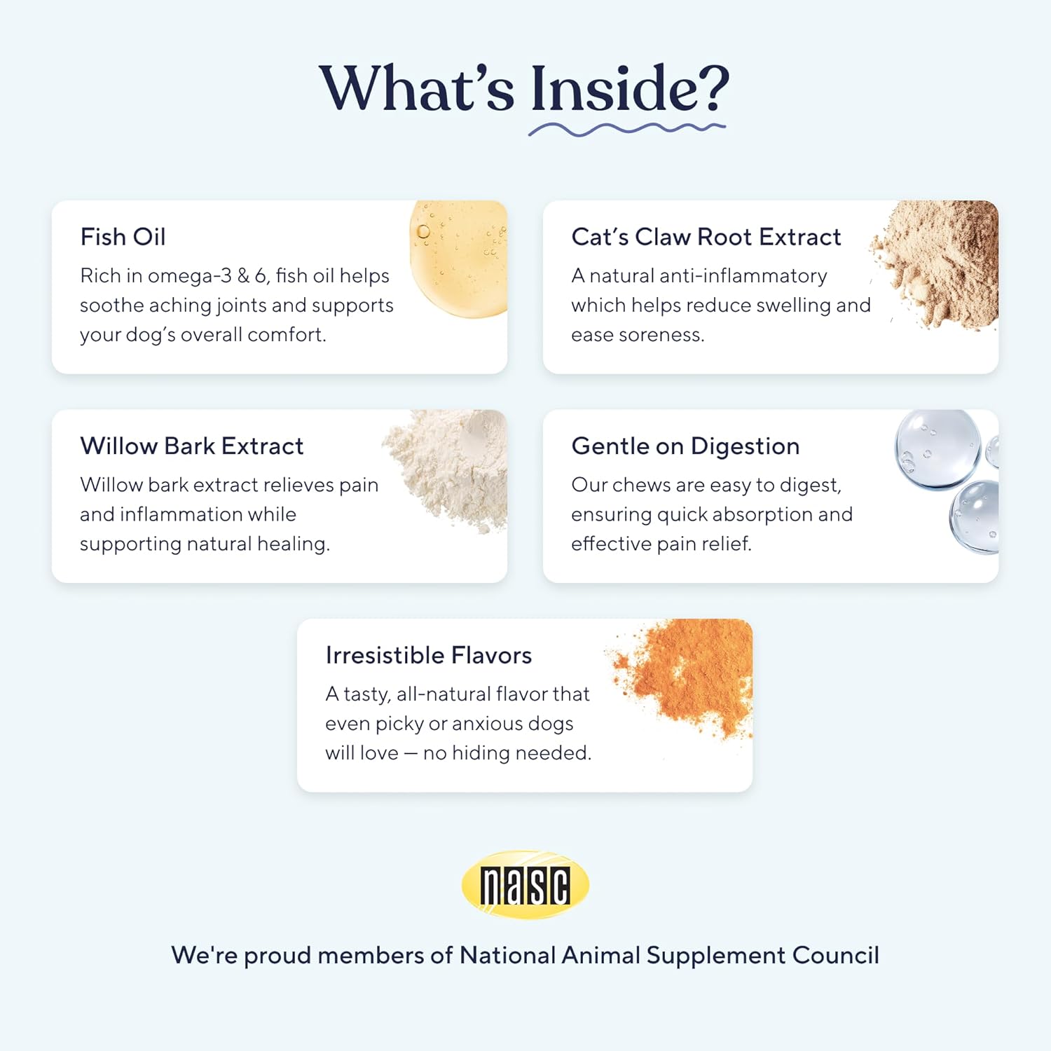 Pawfy Advanced Pain Management - Essential Vitamins & Supplements with Omega 3 |Joint Supplement for Dogs - Supports Hip & Joint Health for Small, Medium, Large Breeds | 30 Fast-Acting Chews