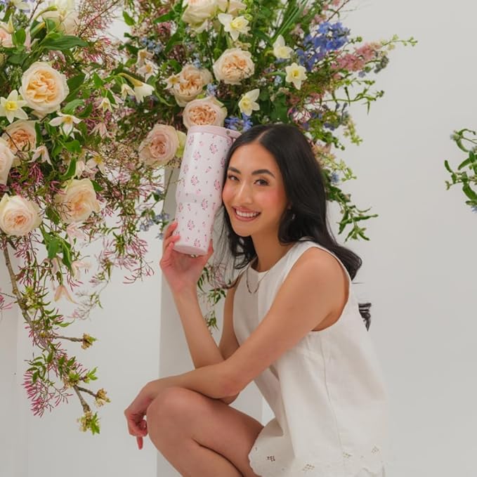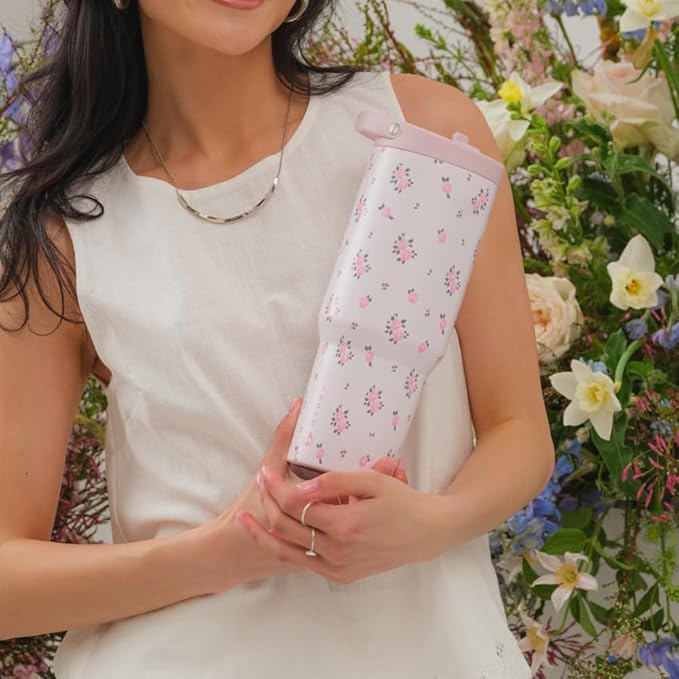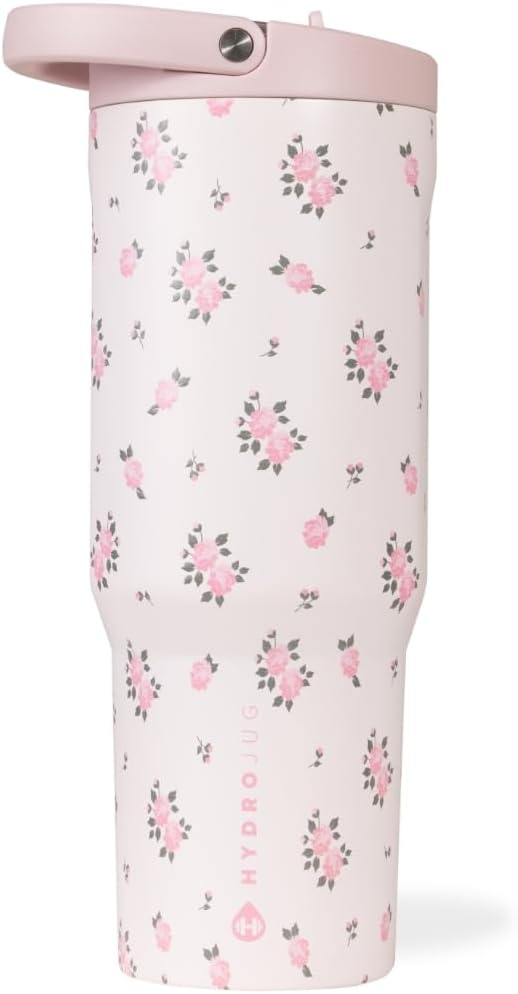 HydroJug Sport - Stainless Steel Tumbler with Straw, Vacuum Insulated, 40oz Leakproof Water Bottle, Ergonomic Design, Reusable, Dishwasher Safe, Rubber Base, Durable for Gym or Outdoors, Wildrose