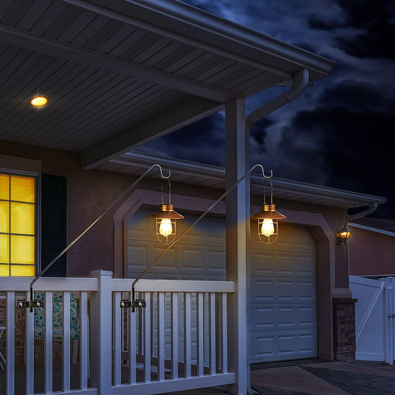 - 【Premium Quality】Our this fence deck hook is made of heavy duty steel.Weather proof black powder coated. A dark finish stunningly complements anything that hangs from it, adding elegance and beauty to your outdoor living space. Solid bracket and curved rod tip helps securely hold items.