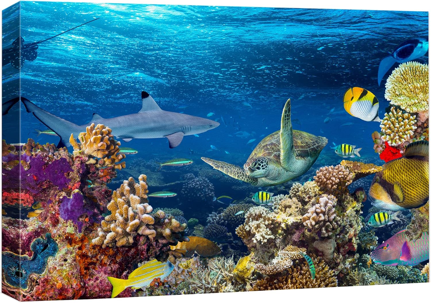 wall26 Canvas Print Wall Art Tropical Island Underwater Turtle Shark Nature Animals Photography Realism Rustic Scenic Landscape Wilderness Earth Colorful for Living Room, Bedroom, Office - 24"x36"