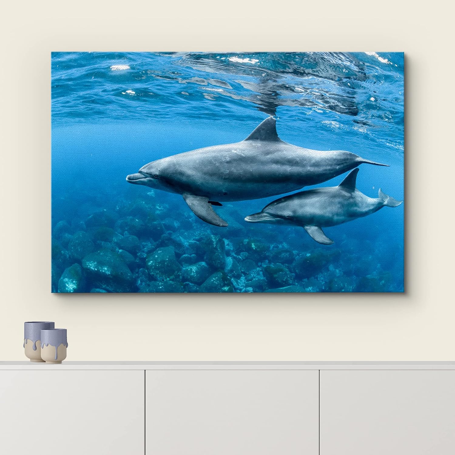 wall26 Canvas Print Wall Art Tropical Ocean Sea Underwater Dolphin Duo Nature Animals Photography Realism Rustic Scenic Landscape Wilderness Earth Colorful for Living Room, Bedroom, Office - 32"x48"