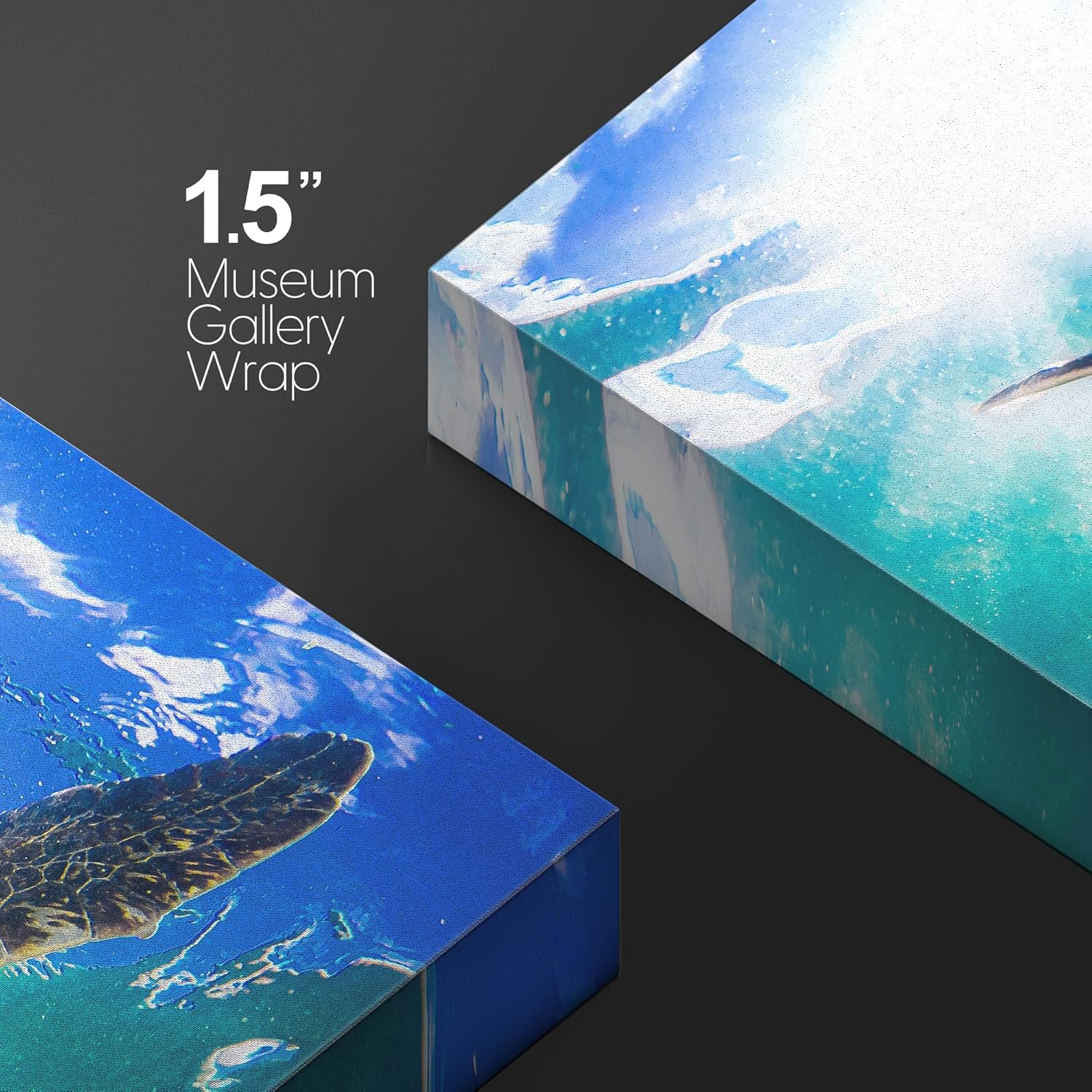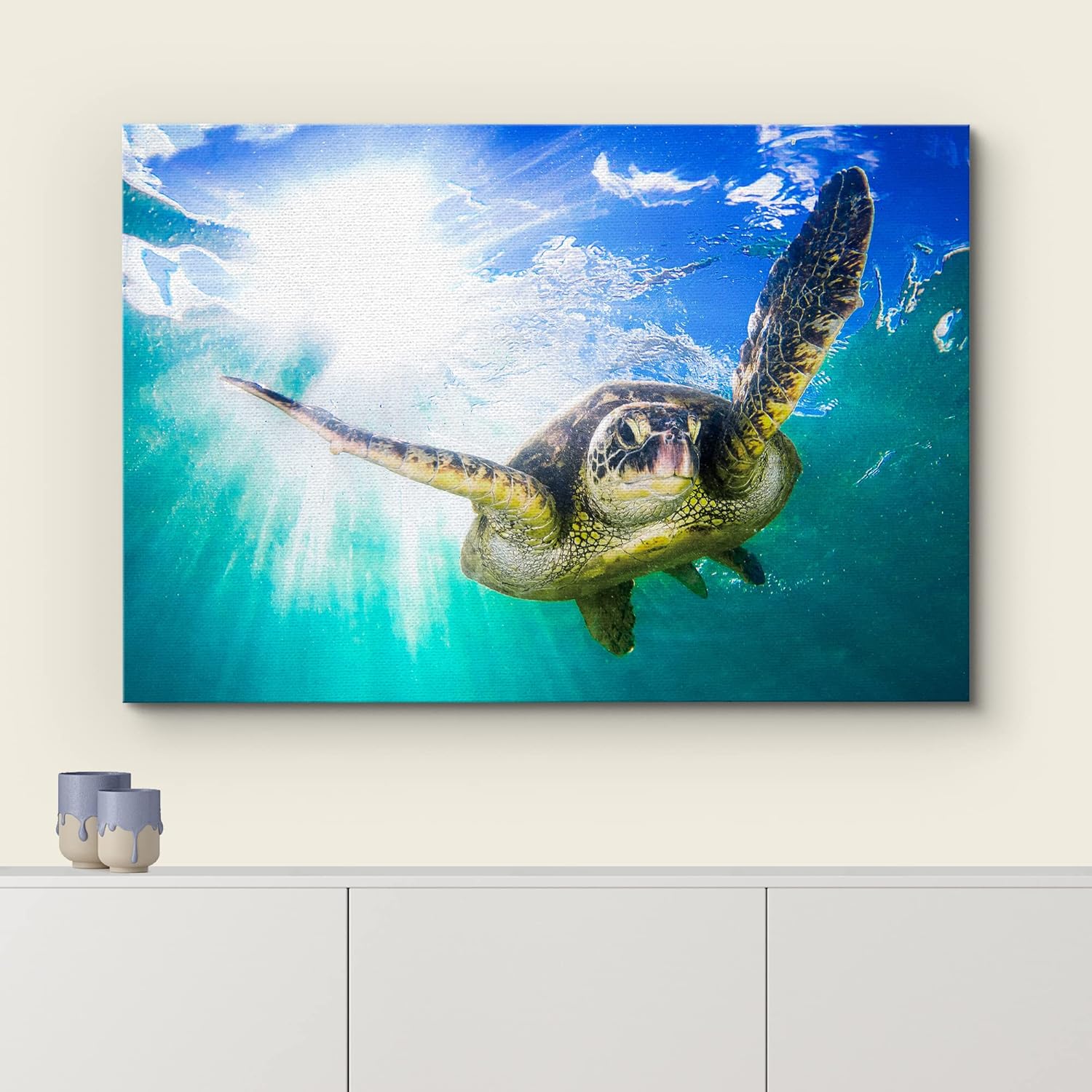 wall26 Canvas Print Wall Art Sunlight Tropical Ocean Underwater Turtle Nature Animals Photography Realism Rustic Scenic Landscape Wilderness Earth Colorful for Living Room, Bedroom, Office - 16"x24"