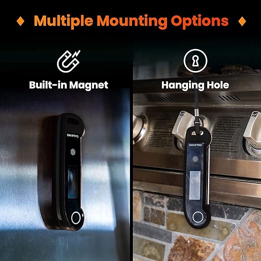 - Magnetic Backing and Hanging Hole: You can stick the ST49 cooking thermometer to any metal surface, and use the hanging hole to hang it on a hook or rope.
