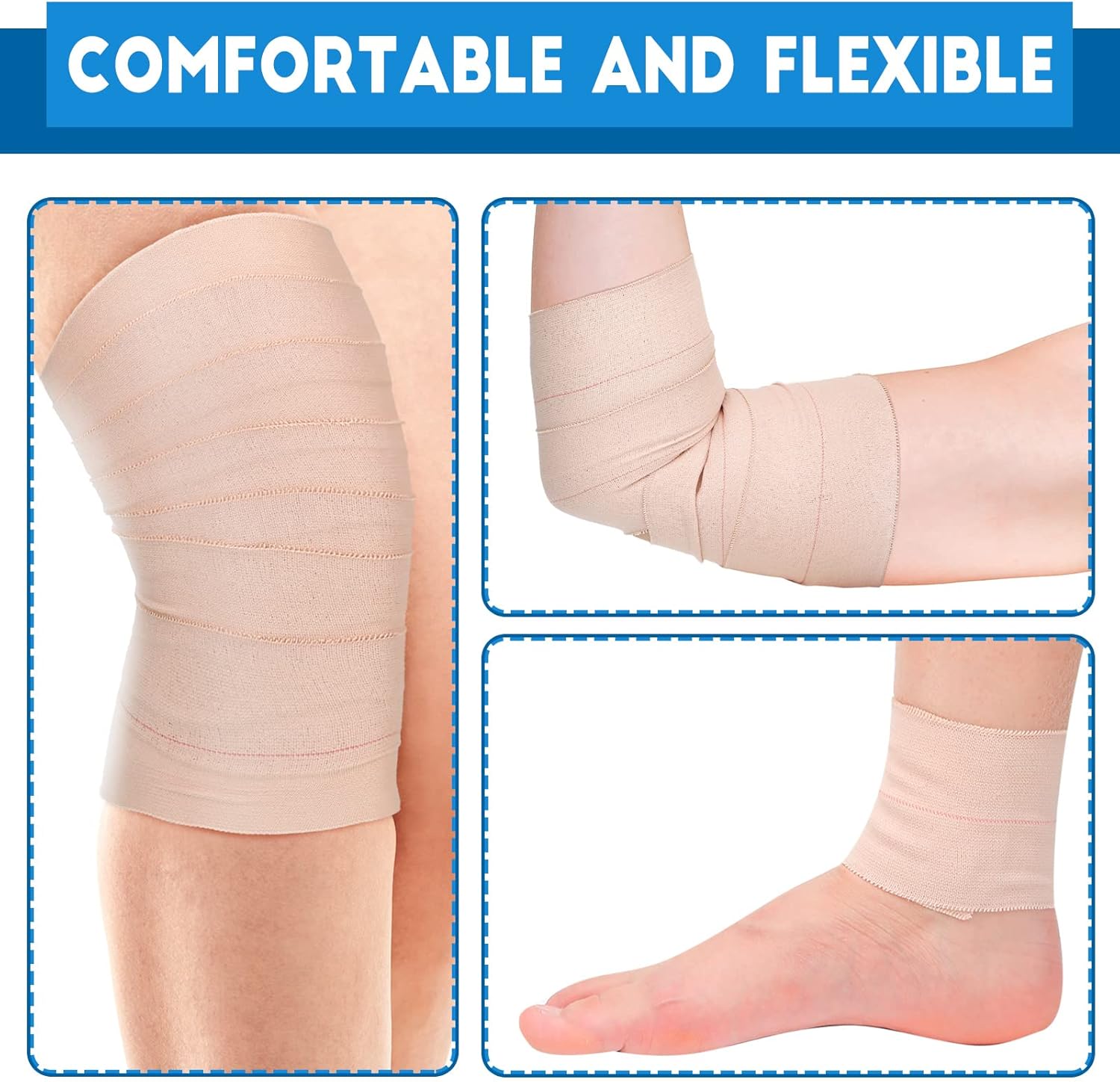 - Wide Application: flexible stretch bandage can prevent injury during exercise, relieve swelling and promote recovery, can be applied for wrapped around body parts, supportive dressing to facilitate movement, and also nice for people and pets to prevent the wound from getting worse