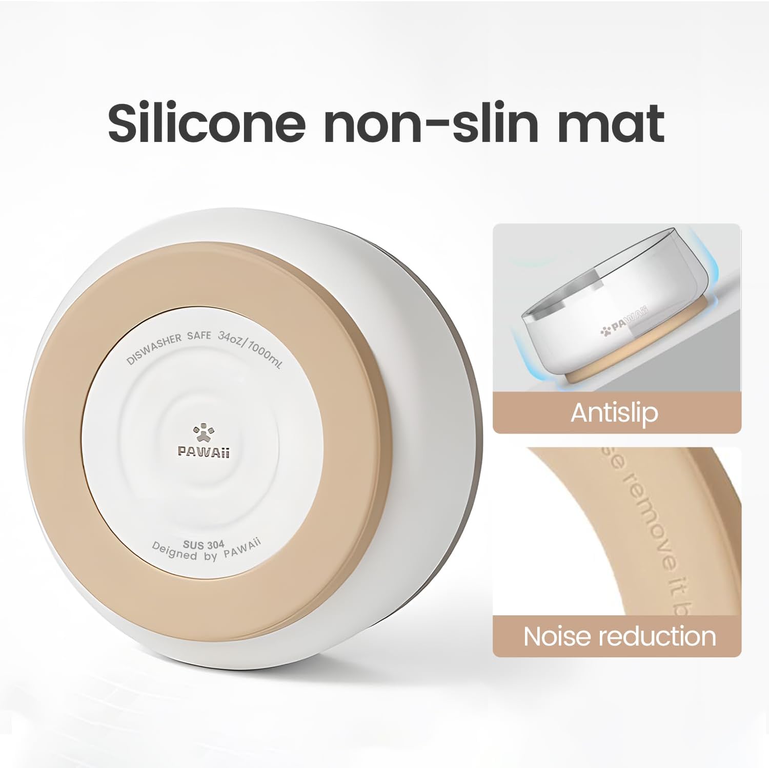 Pawaii Dog Food and Water Bowl with Non - Slip Rubber Base, Metal Insulated Stainless Steel Dog Bowls with ID Tag, Double - Wall, Durable and Dishwasher - Safe for All Dogs (34oz)