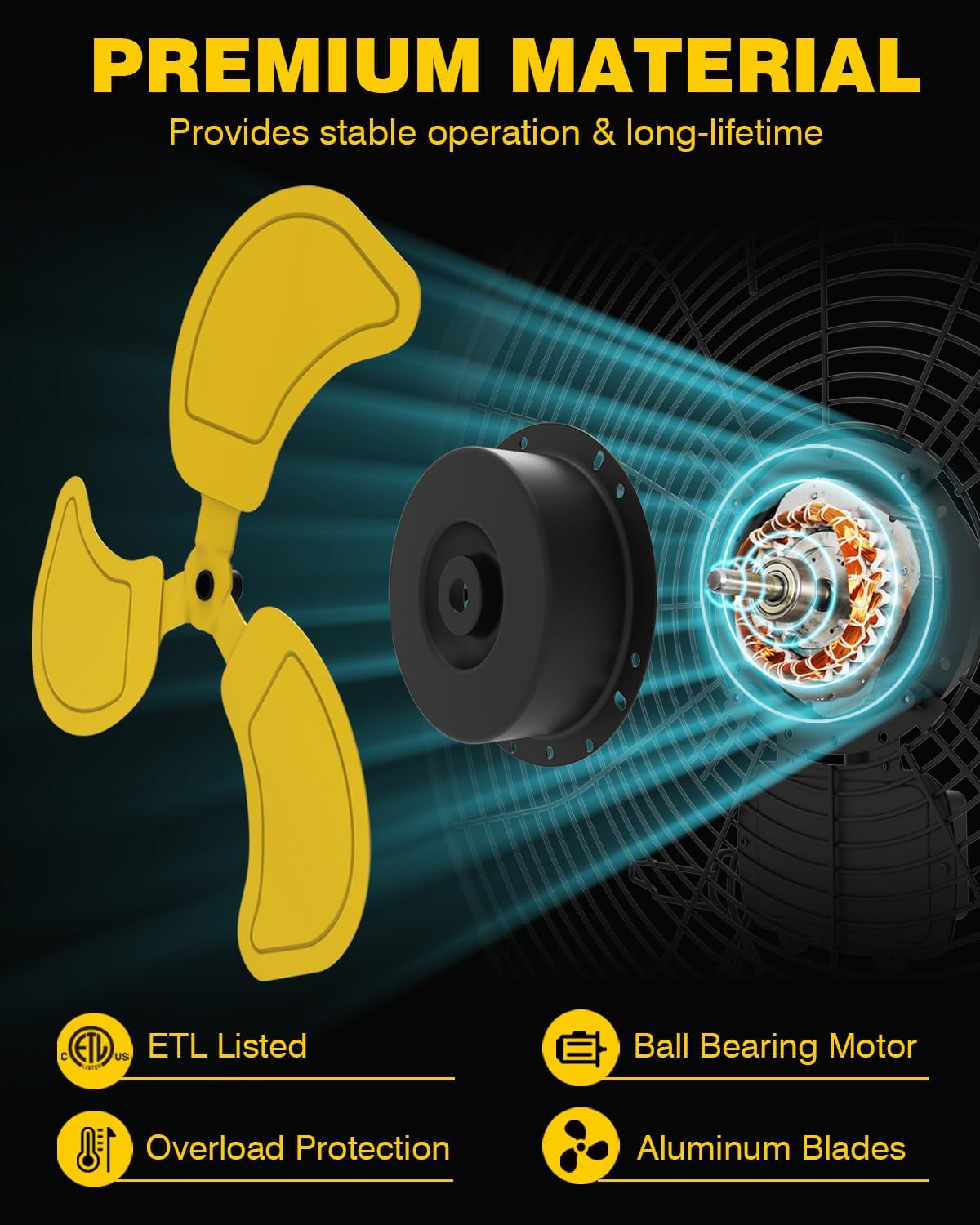 - Perfect for Air Circulation: All-metal construction industrial wall fan 20 inch, reinforced wire grill for safety, 3 aluminum blades with specific angle make 20" high velocity shop fans spread superior airflow from room to room, to assist air conditioners and for outside air exchange.